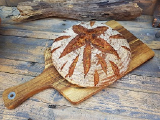 Den Ofen rechtzeitig auf 250 Grad vorheizen. Den Laib einschneiden und mit Dampf in den Ofen schießen. Temperatur nach 10 Minuten auf 220 Grad reduzieren, Dampf ablassen und weitere 40 Minuten fertig backen.