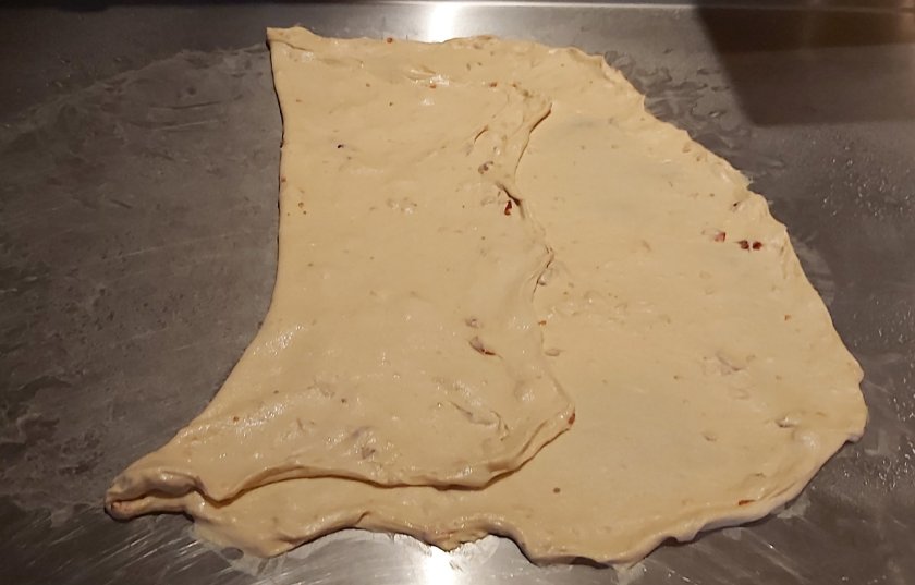 Nach einer Ruhezeit von 20 Minuten wird der Teig laminiert. Wie das funktioniert, seht ihr in Videos .