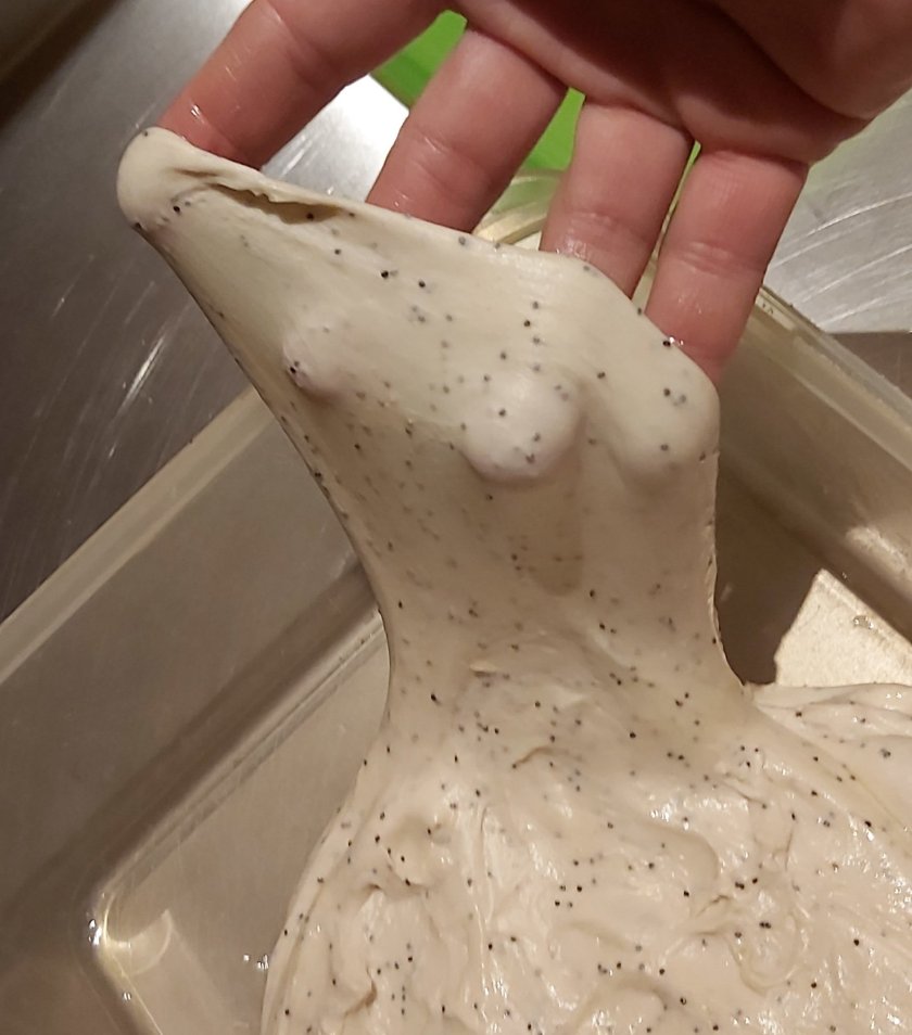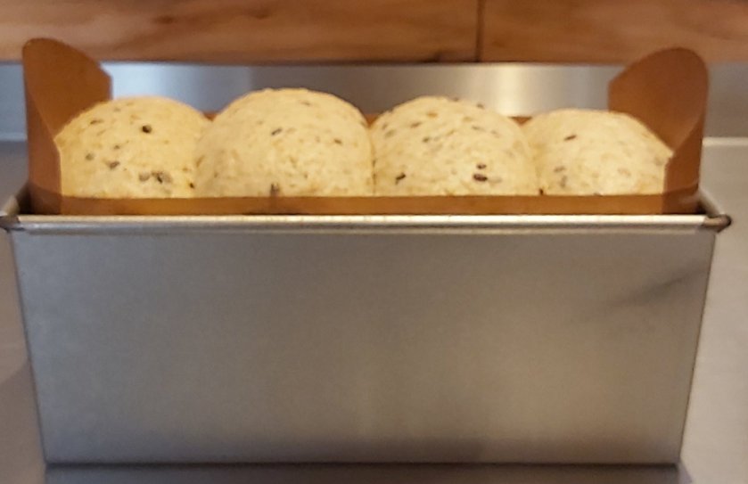 Ihr seht, der Teig hat den Rand der Kastenform schon erreicht.