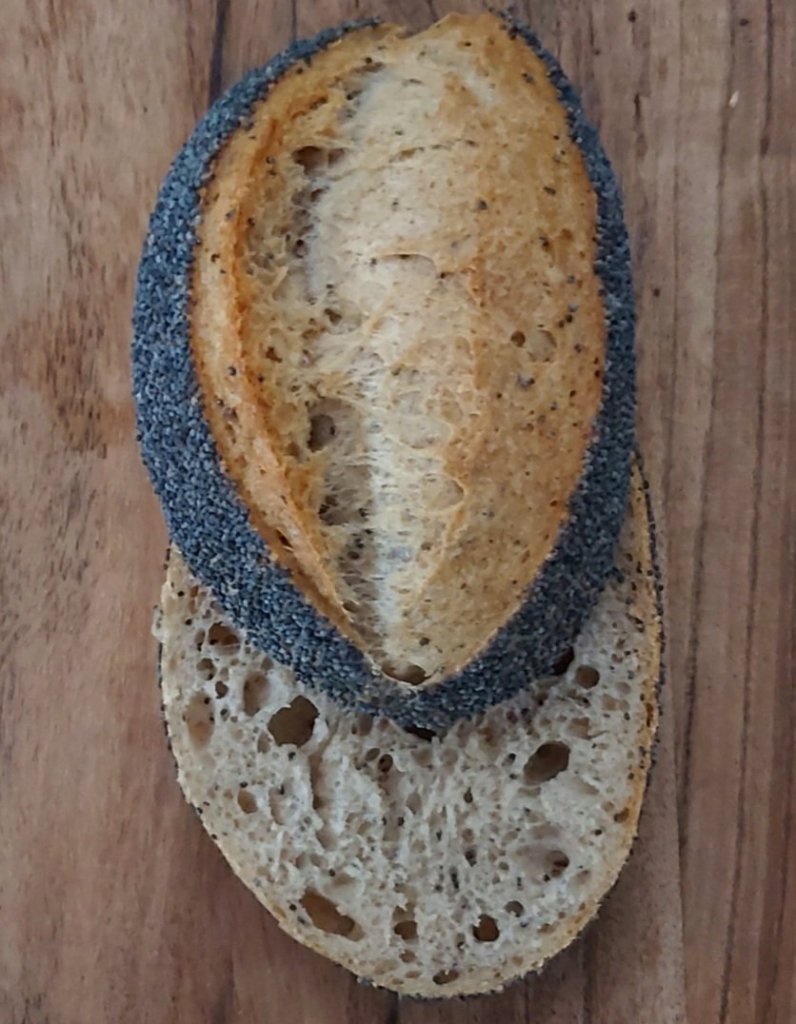 Die beiden Kastenformen und wenn möglich, auch das kleine Brot, in den Backofen stellen und Schwaden, 10 Minuten anbacken. Anschließend den Dampf entweichen lassen, die Temperatur auf 200 Grad reduzieren und weitere 40 Minuten fertig backen. Schaut zwischendurch mal in den Ofen, damit das Brot nicht zu dunkel wird. Ich habe es die letzten 20 Minuten bei 180 Grad fertig gebacken.