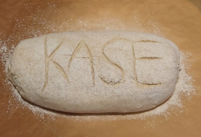 Alle Zutaten, außer dem Käse und der Butter, zu einem homogenen Teig kneten. Anschließend beides hinzufügen und solange kneten, bis die Butter komplett eingearbeitet ist. Fenstertest nicht vergessen!