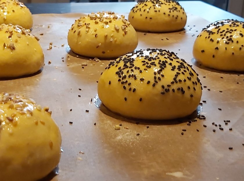 Die Laiber mit Schwaden auf der untersten Schiene 10 Minuten anbacken. Anschließend den Dampf ablassen, Temperatur auf 200 Grad reduzieren und weitere 40 Minuten fertig backen.
